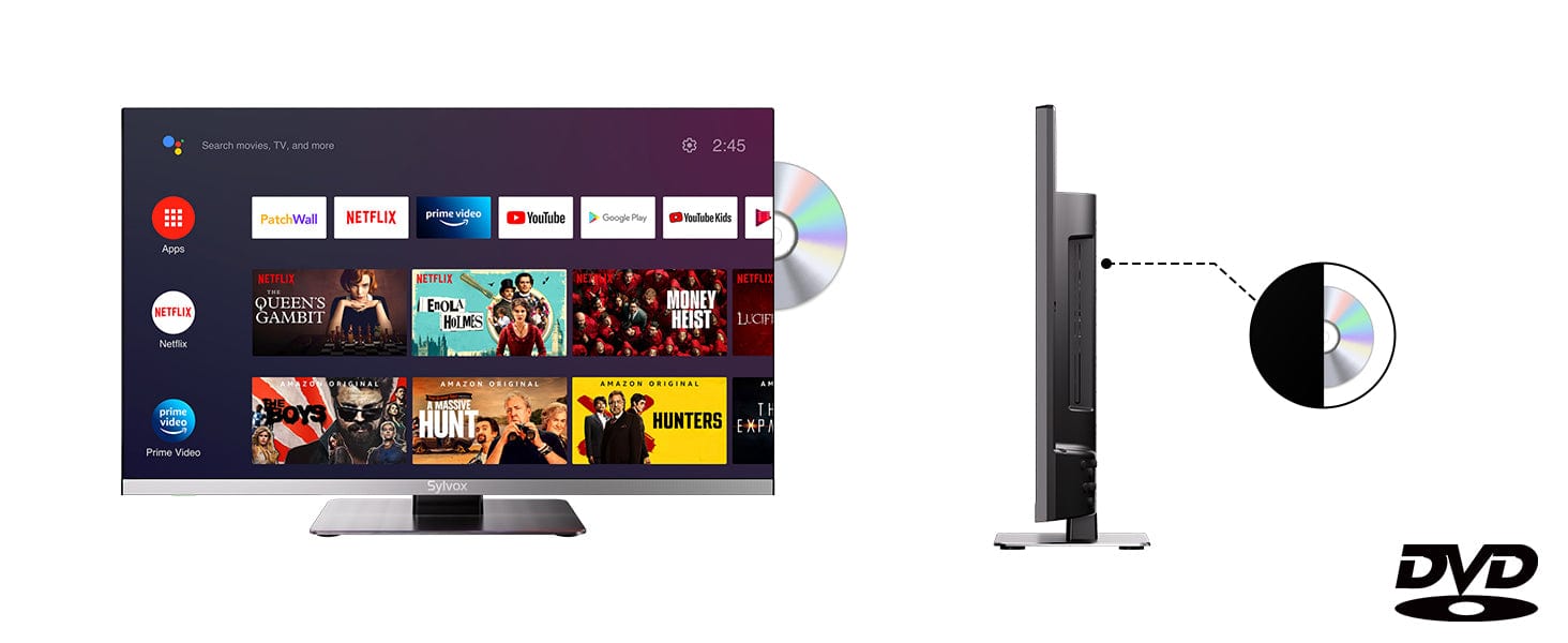 Meilleure TV pour camping‑car 22’’ Smart avec DVD intégré, bordure fine – Marina
